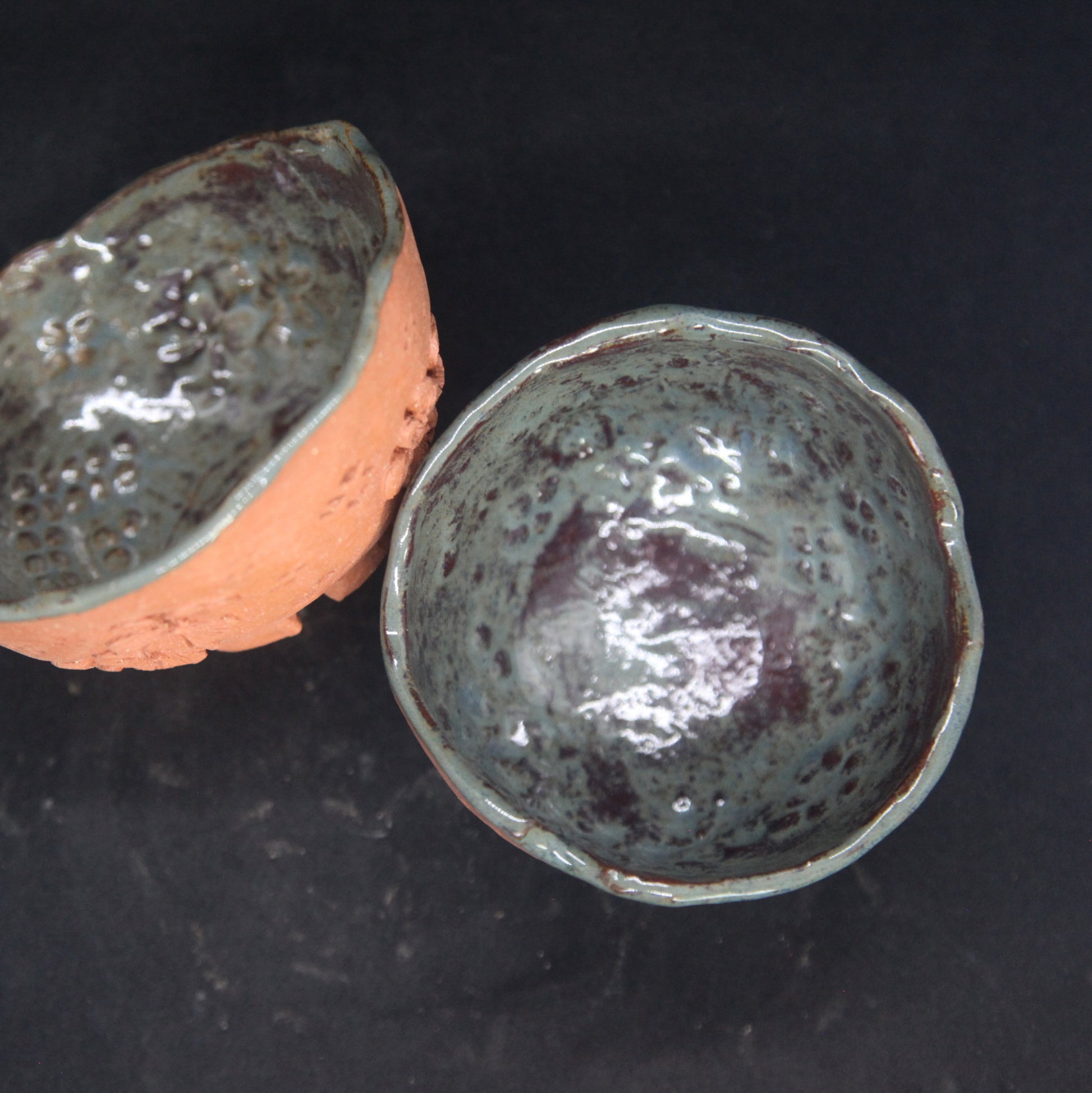 Ces tasses sont vendues par paire. Bien que jumelles, chaque tasse est unique. Dans ce cas, une tasse est en terre noire et une en terre rouge.